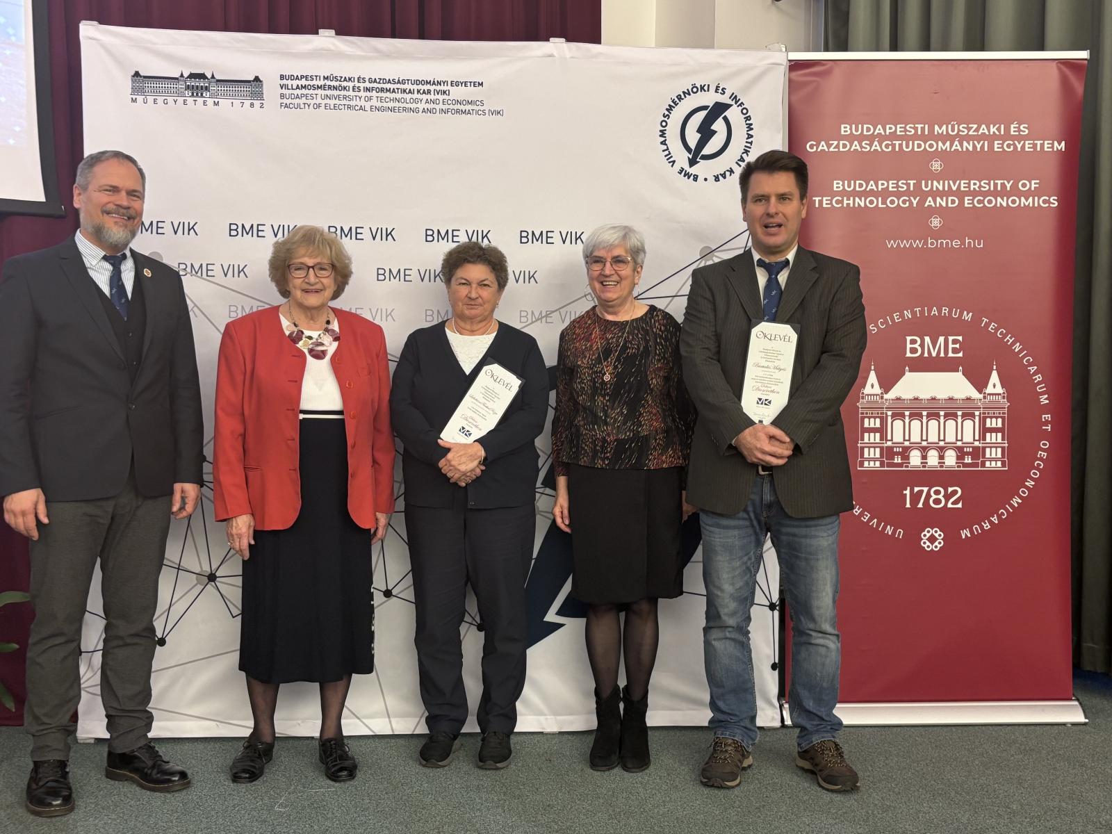 Pro Facultate díjat és Dékáni dicséretet vehettek át kollégáink A BME-VIK Ünnepi Kari tanácsülésén Pro Facultate díjat vehetett át Halász Edit és Győri Erzsébet, Dékáni dicséretet vehetett át Lukátsiné Farkas Róza, Bartalis Mátyás és Németh Géza. Gratulálunk!