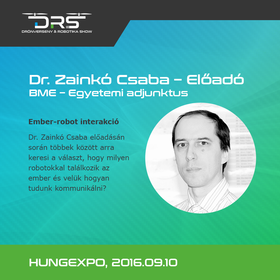 Dr. Zainkó Csaba előadásán során többek között arra keresi a választ, hogy milyen robotokkal találkozik az ember és velük hogyan tudunk kommunikálni? Kezeljük úgy a gépeket, mintha emberek volnának, vagy fontos, hogy csak egy gép maradjon az emberek szemében? Hogyan nézzen ki egy robot? Emberszerű legyen? Miként reagálnak az emberek erre? Merre haladunk a kommunikációban és milyen nehézségeket látunk most az ember-robot interakcióban?